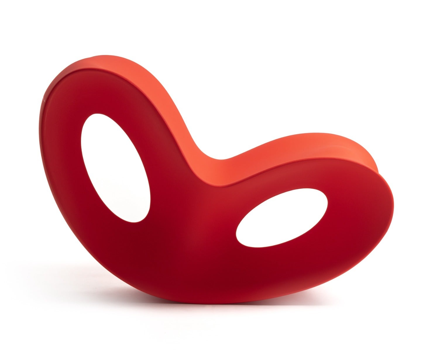 Created by Ron Arad, one of the biggest designers in the international arena, with his masterfully unconventional style, Voido is a rocking chair that looks like a piece of contemporary sculpture, but is made using industrial technology capable of producing large yet light shapes: rotational-moulded polyethylene. Voido’s sleek, ergonomic volumes welcome the body in a flowing embrace, but its seeming simplicity hides considerable complex research and engineering. Voido is available in a glossy black or white finish, for an irresistibly glamorous effect, perfect for the most sophisticated of environments, or in a matt version, in a range of colours to fit in with any space and style, including outdoors, thanks to the water- and weather-proof nature of the polyethylene.