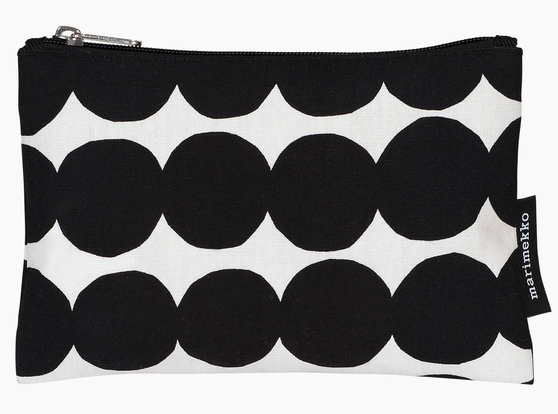 The Kaika cosmetic pouch is made of heavyweight cotton and it is decorated with the Räsymatto pattern, which is printed in Helsinki. The pouch has a nylon lining, dirt repellant on the fabric and a zipper closure.