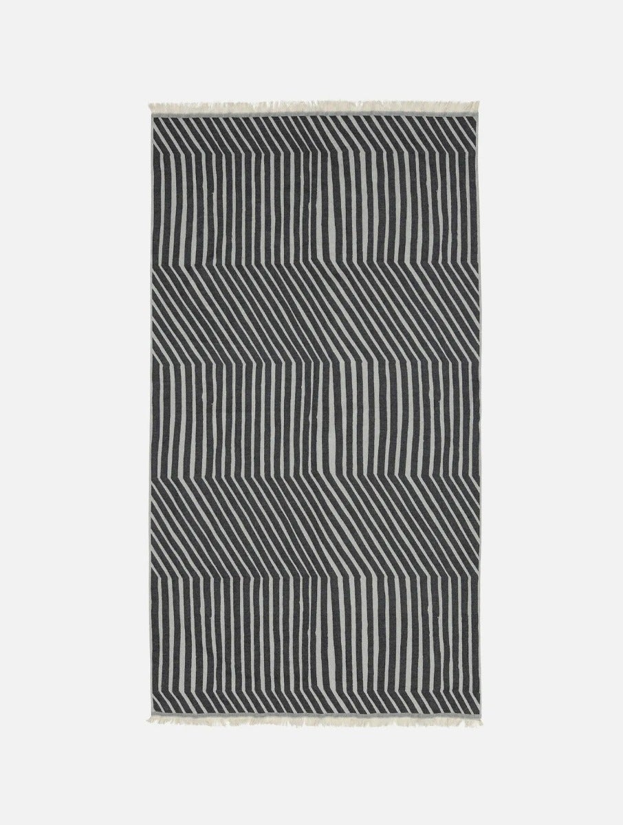 The hamam Kalasääski pattern bath towel is made of organic cotton with a jacquard knit. The lightweight towel has fringes at the ends.