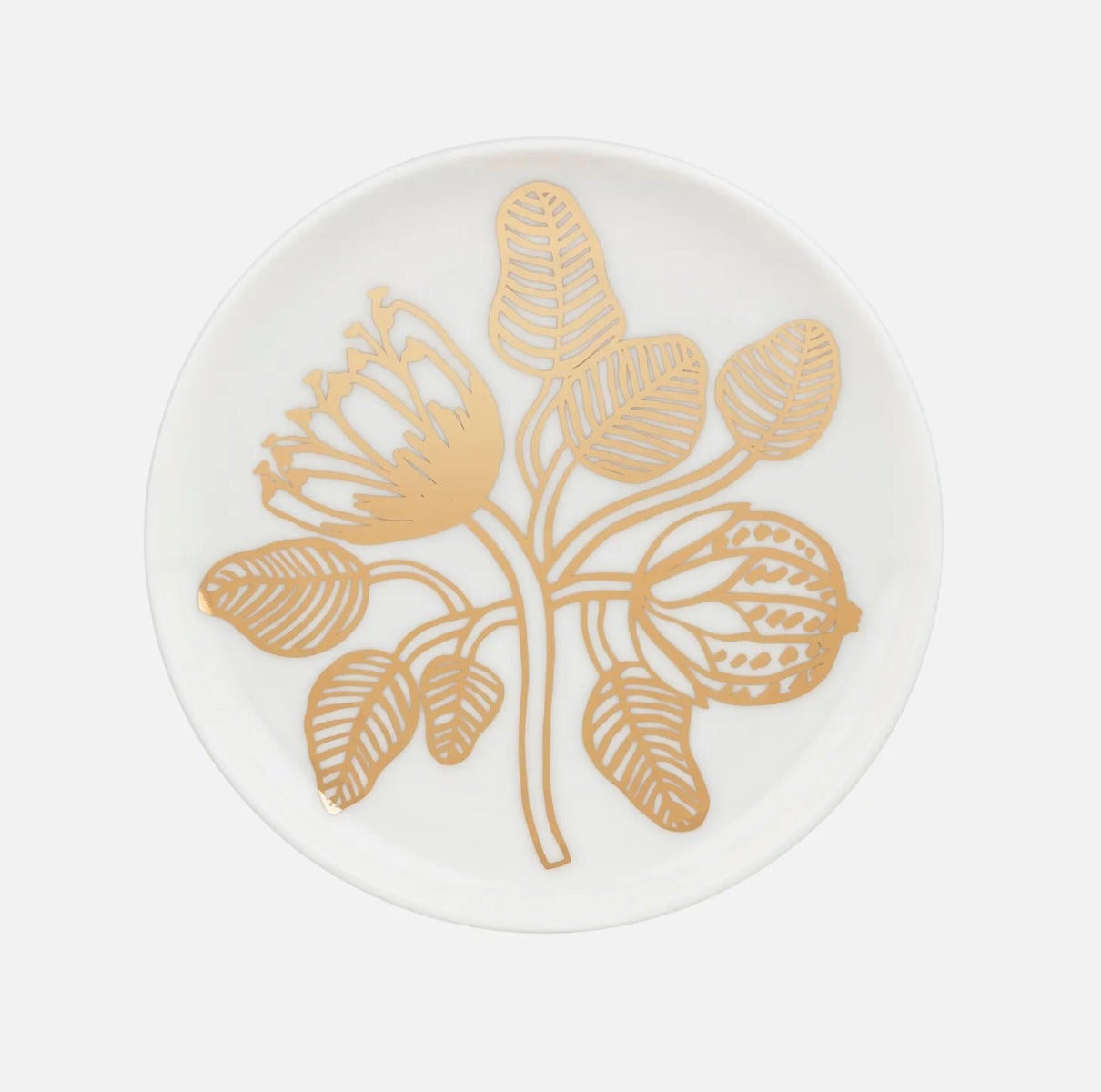 The small Oiva plate features the golden metallic Tiara pattern decal. Due to the golden pigment, we recommend washing the product by hand and this product is not suitable for microwave use.