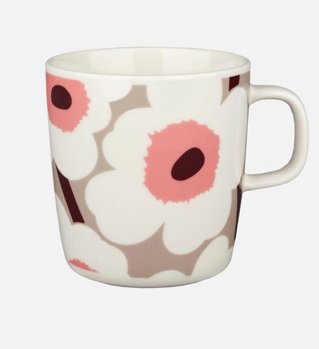 Marimekko Oiva / Unikko Mug - 400 ml - White, Brown, Pink