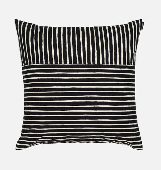 This cotton cushion cover features the Piccolo pattern, which is printed in Helsinki. The cover is sewn from two pieces, which makes the pattern run in two different directions. The cover has a concealed zipper on one side and the seams feature double topstitching.
