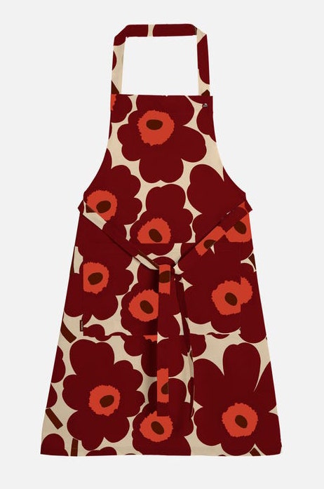 Marimekko Pieni Unikko Pattern Apron - Vanilla, Wine Red, Red
