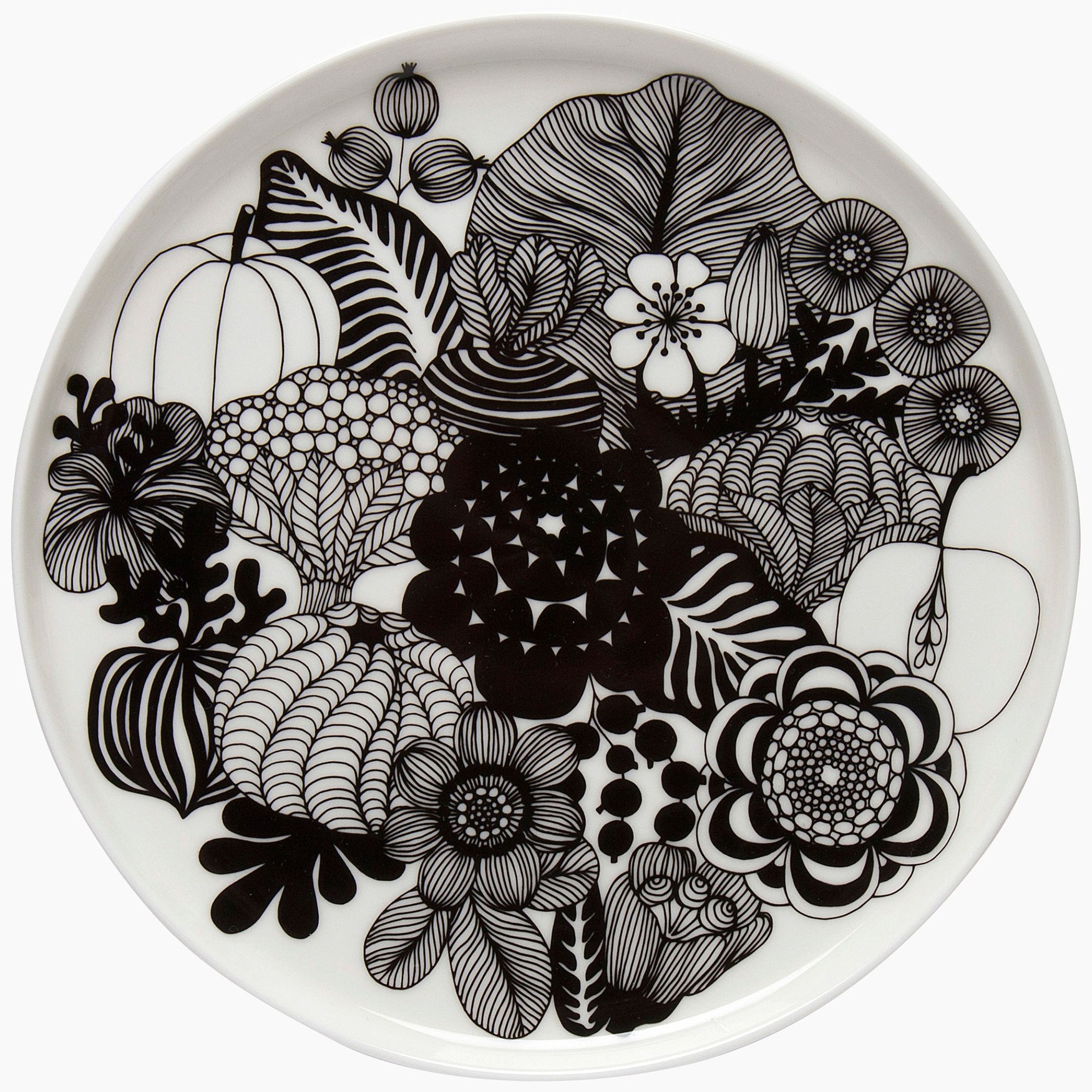 A central motif of flowers and berries from the Siirtolapuutarha (City Garden) pattern covers this white stoneware plate. It’s dishwasher, microwave, and freezer safe; glazed color and pattern remain vibrant. This product was designed in celebration of the 100th anniversary of Finland´s independence.