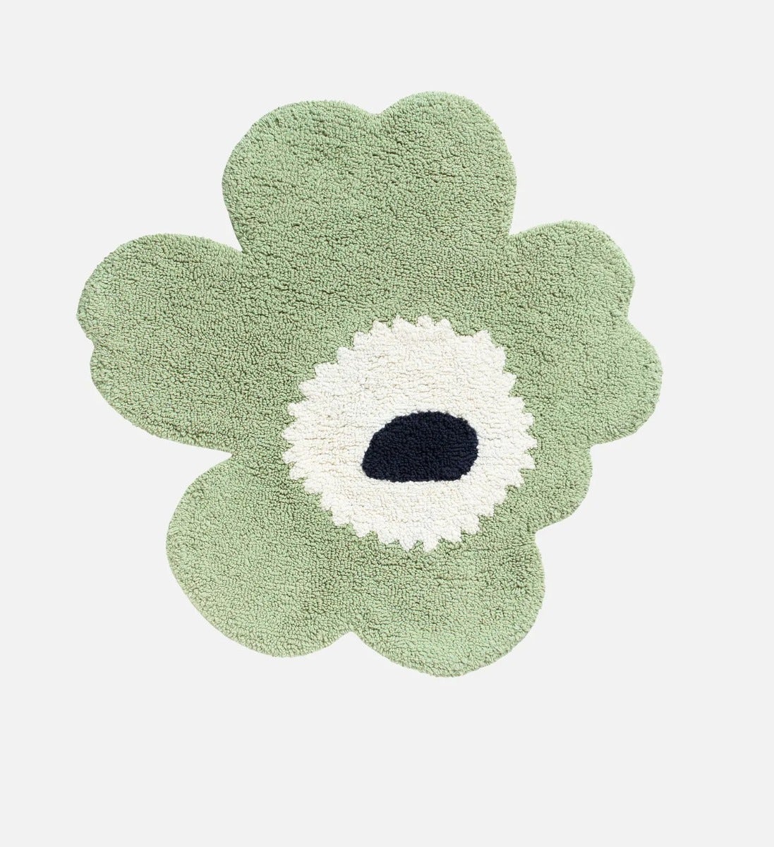 The Unikko flower shaped tufted bathmat is made of organic cotton. The soft tufted surface and hand-cut shape give every bathmat a unique appearance, so small differences between products may appear. The bathmat has a non-slip backing.