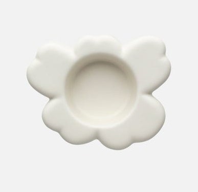 The Unikko flower shaped tealight holder is made of whiteware. We recommend washing the product by hand.