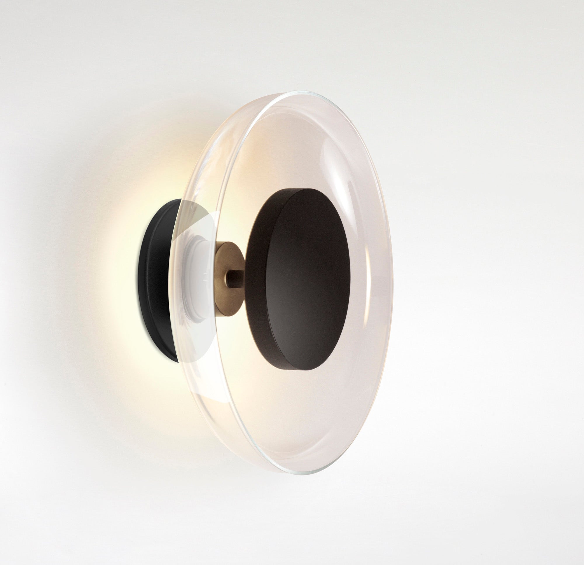 The Aura follows an emotional design, because of what glass means in the collective memory, as well as a rational and contemporary design because it draws on LED technology to achieve efficiency and subtlety. The opalescent, transparent, or coloured glass of its lampshade allows the light to bathe the wall and creates a luminous effect without harshness, while also generating a point of interest in the space.