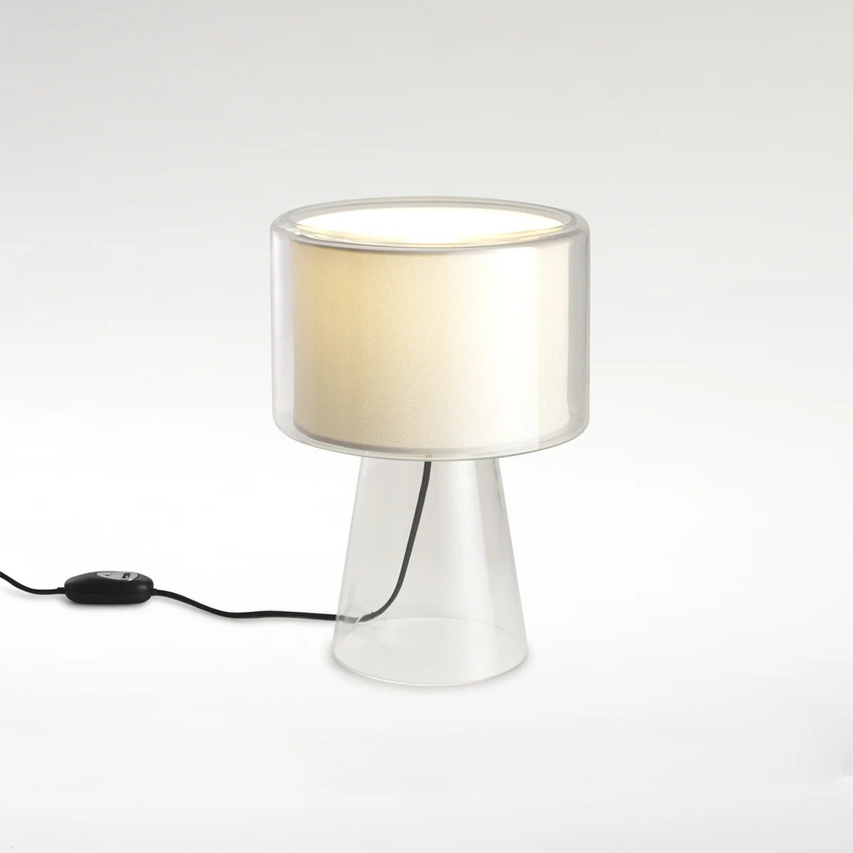 Mercer is a beautiful and elegant lamp. The fusion of different materials achieves a spectacular result due to its pure textile shade floating in a transparent blown glass structure. The inner diffuser is available in natural cotton ribbons and in a more modern and minimalistic version, in pearl white.