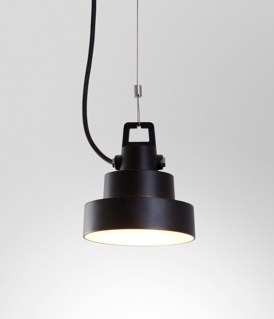 The quality of a product’s design lies in whether or not it withstands the test of time. Plaff-on! has been illuminating indoor and outdoor ceilings and walls for more than a decade, and recently, thanks to a bollard version, gardens as well. A collection that is now expanding to include a new pendant version with a totally industrial vibe. Solid and compact, its -6.2 inches-wide structure, in black or rust brown, surrounds the glass diffuser.