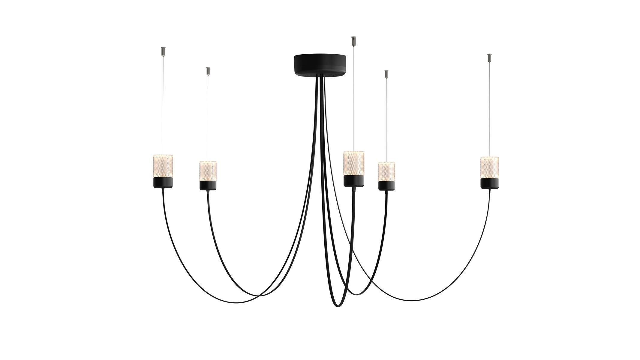 The Gravity Chandelier comes in two sizes, after the number of arms, Gravity Chandelier 5 and Gravity Chandelier 7.
