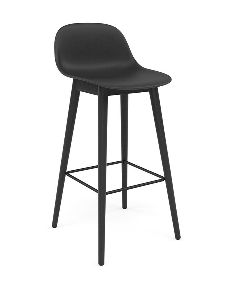 CLEARANCE Muuto Fiber Bar Stool with Backrest - Wood Base, Black
