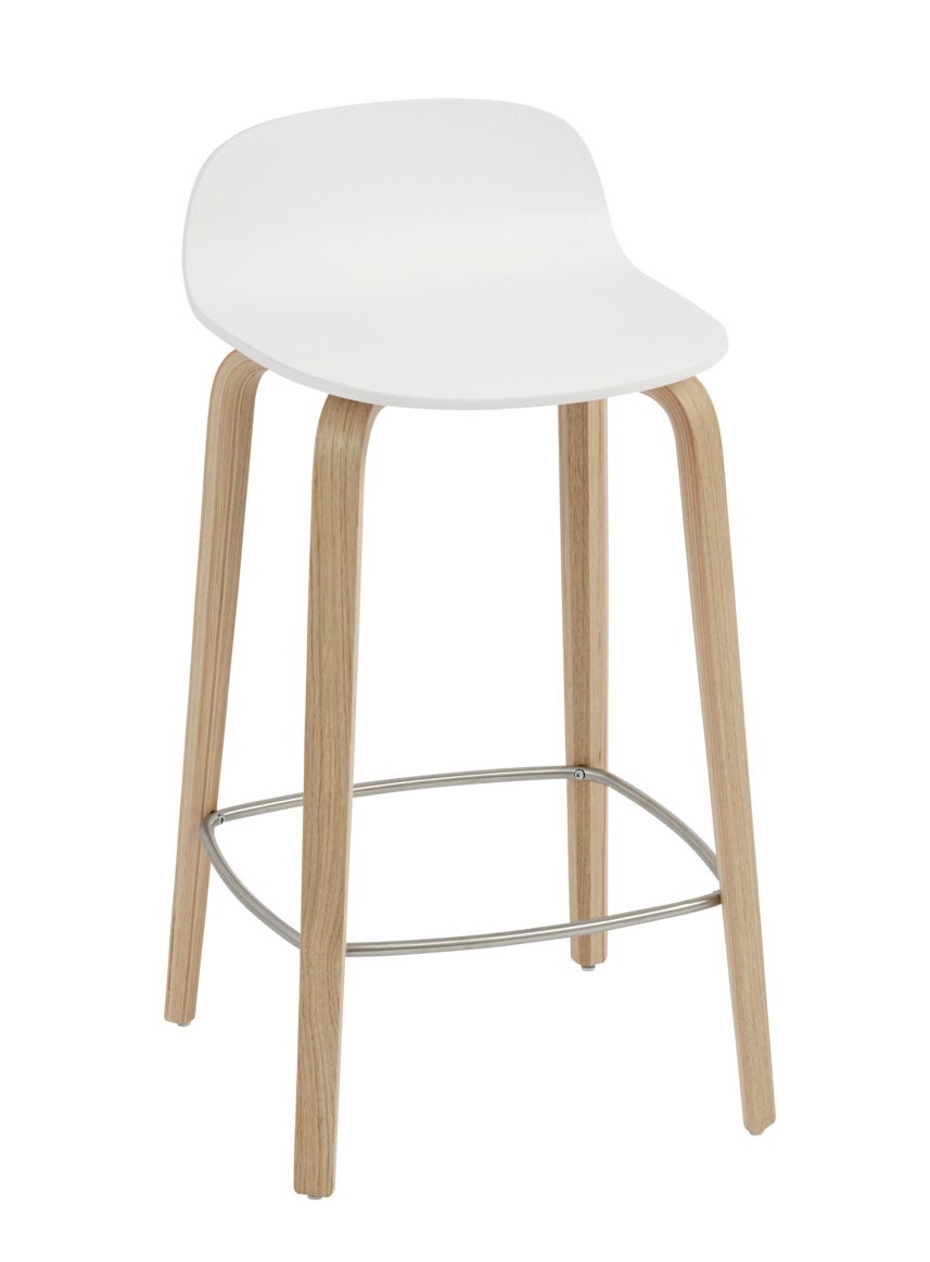 The VISU COUNTER STOOL is an ergonomic and functional counter stool with a timeless and recognizable profile. Formpressed veneer wood gives the shell of the chair its characteristic shape and creates visible lines and patterns in the surface that complement the design.