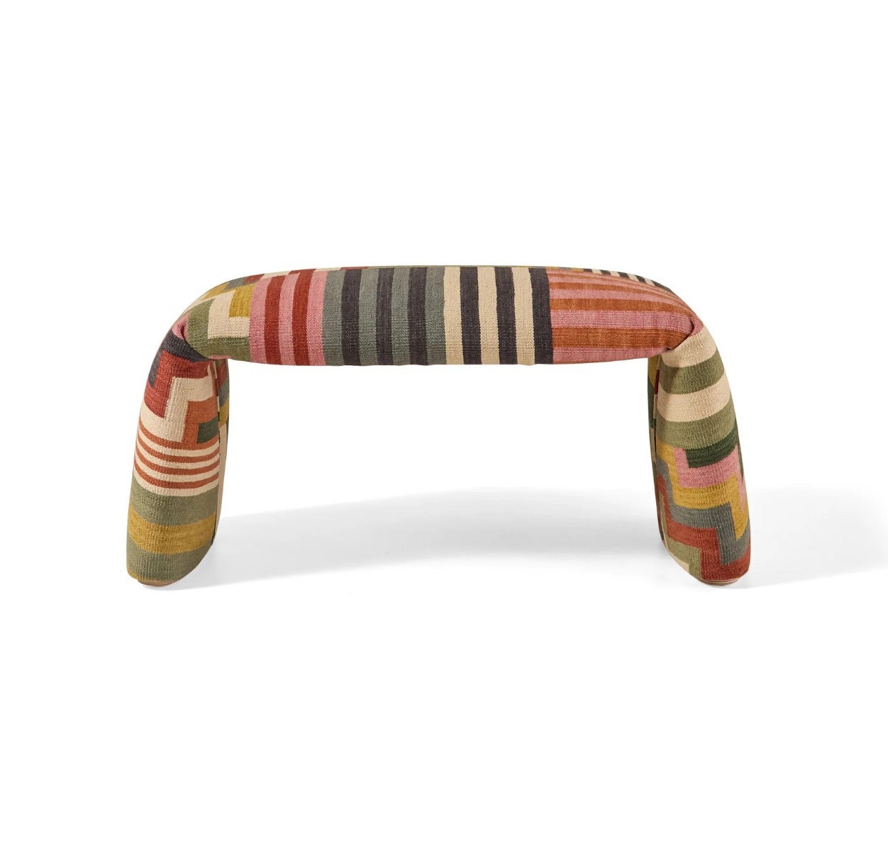 Folded, a bench that emerge the traditional concept of the rug, and challenges the traditional boundaries of design. Inspired by the essence of the carpet, this sculptural piece elevates its functionality beyond the floor, transforming into a practical and versatile furniture element. Both the upholstery design and the shape of the bench itself have been conceived as an inseparable duo, where functionality and expressiveness go hand in hand at all times.