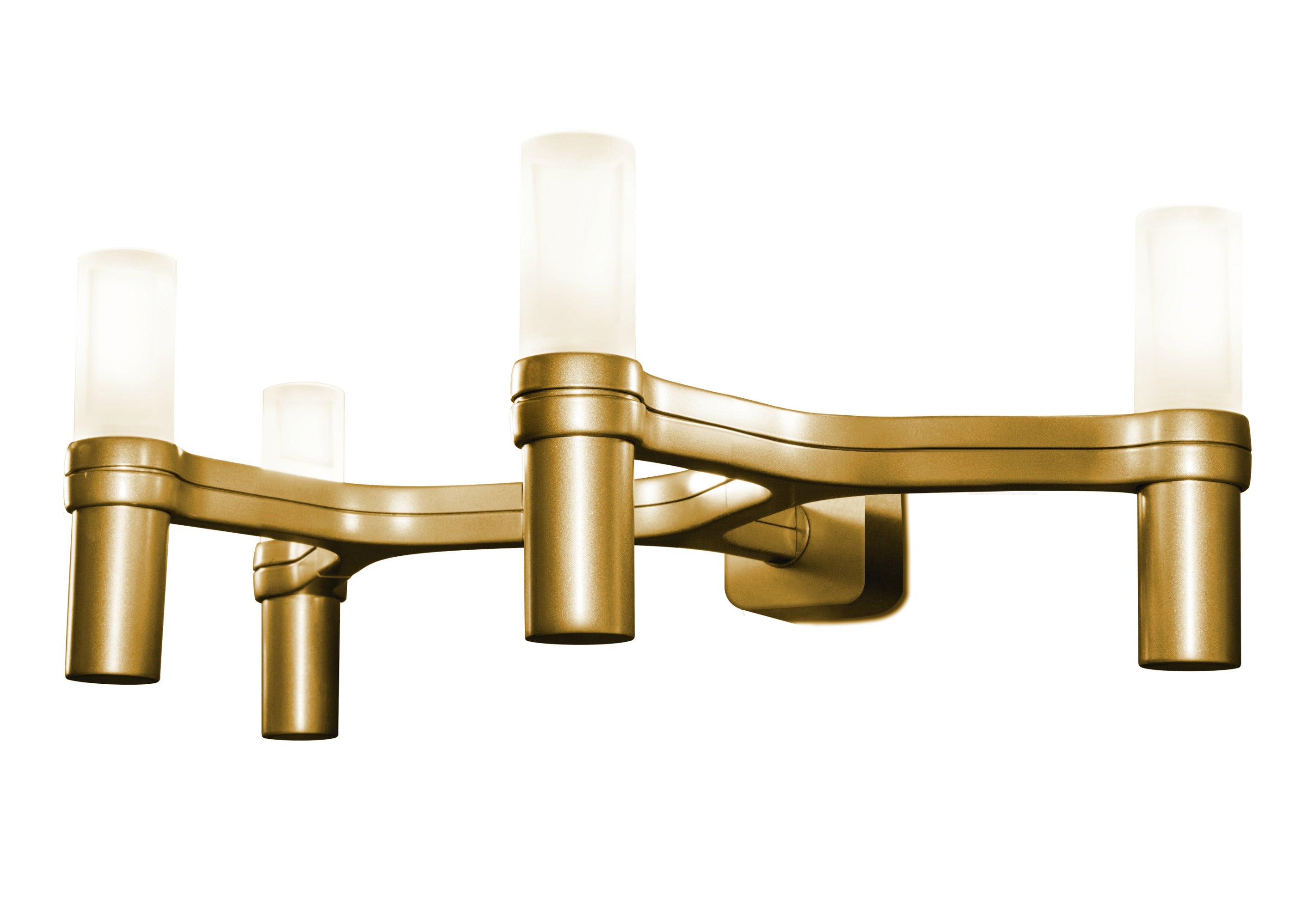Wall lamps, with modular structure in die-casted aluminum and sandblasted glass diffusers. Structure in aluminum hand polished glossy or gold plated or painted in matt white, matt black or gold.