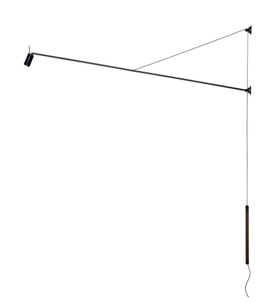 SWAN is a dimmable LED wall lamp for direct lighting. Aluminum matte black painted structure. Arm rotation of 40° vertically, contained by a leathered counterbalance, and 180° horizontally. Its directable cylindric head allows to flexibly orientate the light beam, with optional honeycomb filter for antiglare.
