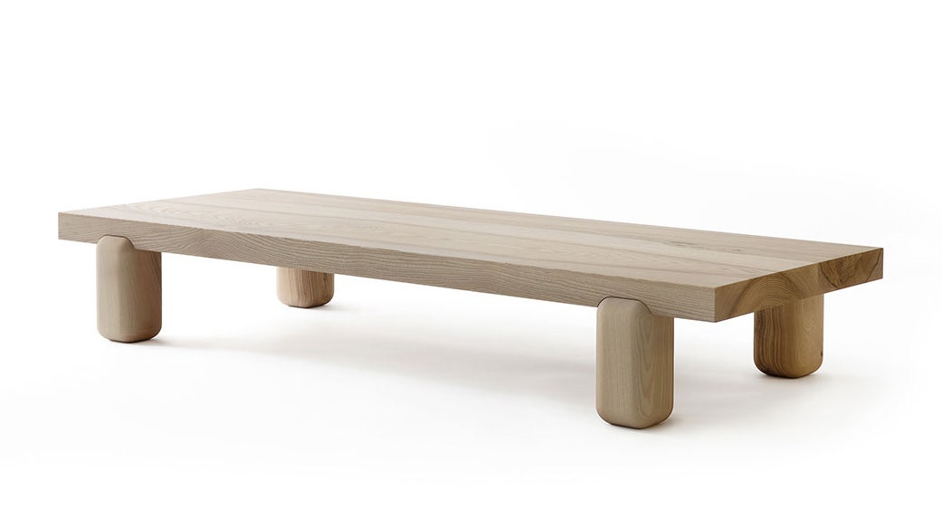 “Over 100-year-old wood is allowed to show it’s true character, color variations, cracks and marks. Some people might call these imperfections, but I think they are the essence of the piece and should be embraced. The low profile of the table has a grounding effect, and it brings harmony and calmness to a space. It also enhances the natural and organic feel of the piece. The table top, made of one solid piece, is held up by chunky blocks. These elements are distinguished from each other by form: the rounded leg and sharper edges of the top. All this to enhance the solidness of the material it is made of.” — Designer Joanna Laajisto.