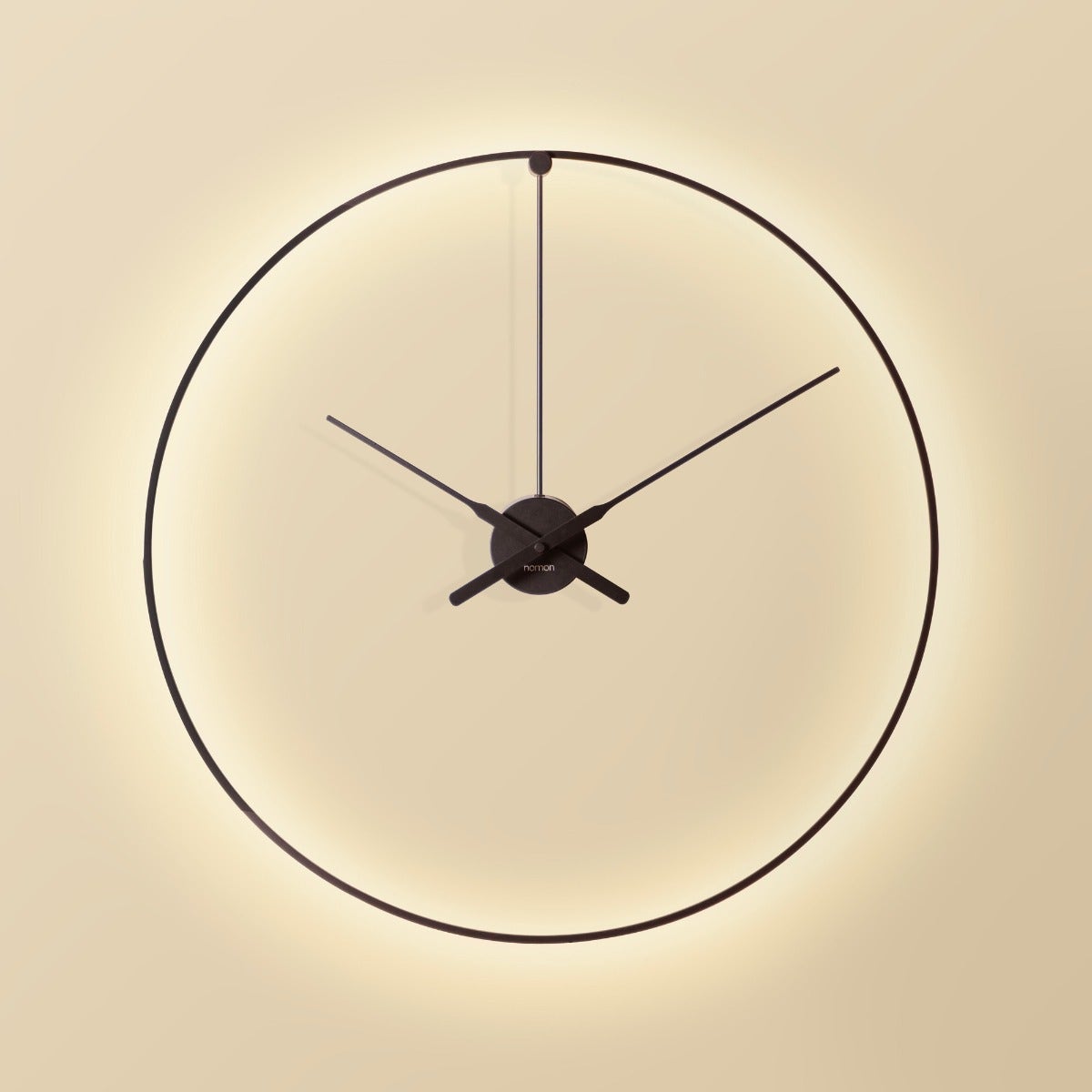 The Ombra Wall Clock is a beautiful decorative piece that acts both as an elegant clock, as well as a wall lamp. Its mysterious sleek black metal ring hides a LED strip that emits a warm charming ambient light, like a halo that enhances any modern decoration in an office, restaurant or home.