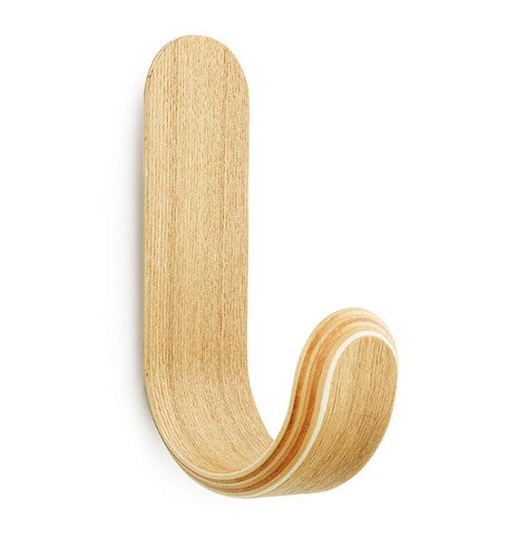 Curve is a wall hook in its most traditional and symbolic form. Shaped like a J, this wooden wall hook has a classic, uncomplicated look. The designer’s clever interpretation of the iconic hook shape makes Curve intuitive in use. Its width and the defined texture of the wood add warmth, humor and personality to the design.