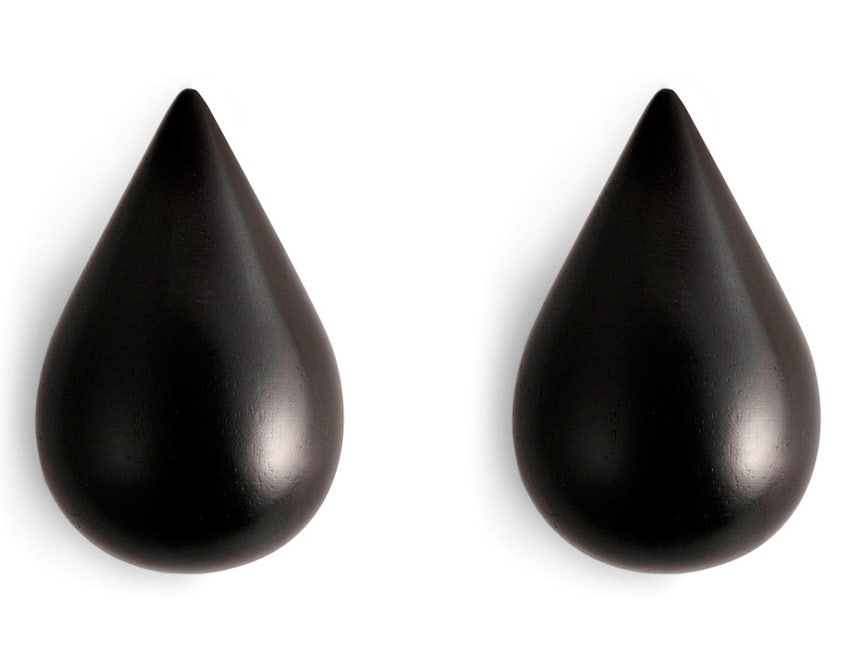 The Dropit hook is a wooden, drop-shaped hook with a strong visual expression and exquisite finish. Hang a single drop on the wall or create a pattern using several Dropit hooks.