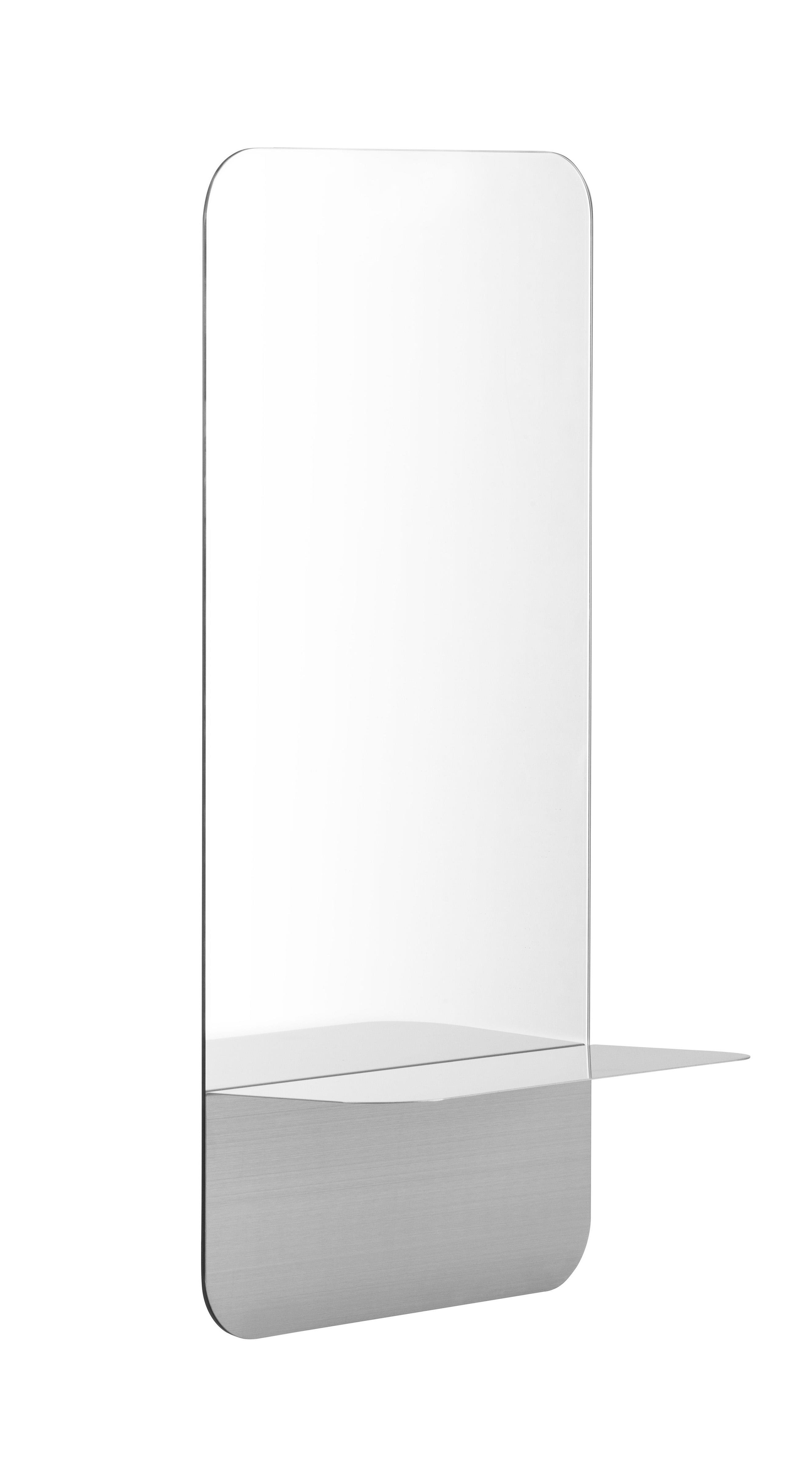 Horizon is a collection of wall mirrors in varying geometric shapes that all have a steel shelf integrated into the design. The shelf serves as a practical place to put things on, at the same time creating a beautiful visual effect. The Horizon wall mirrors are the perfect hybrid between functionality and aesthetics.