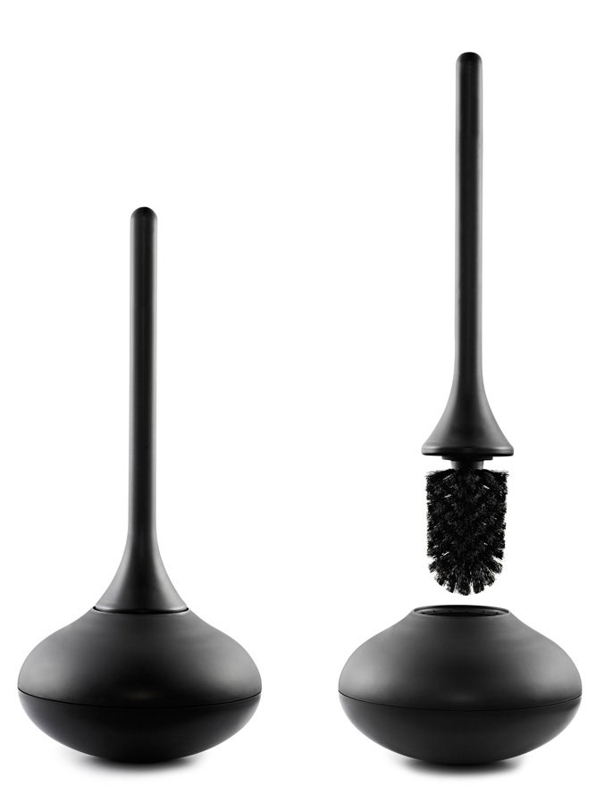 Ballo is an unconventional toilet brush with a playful expression. The toilet brush has an organic shape and features a curved bottom that allows it to wobble back and forth without tilting over.