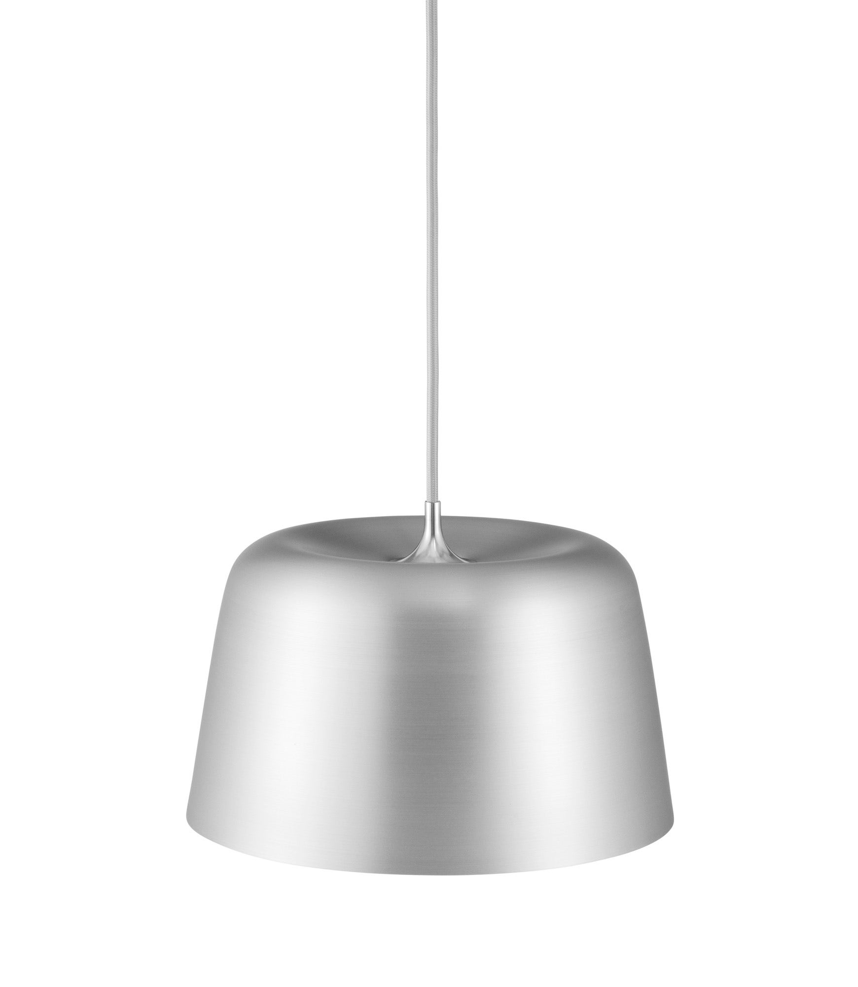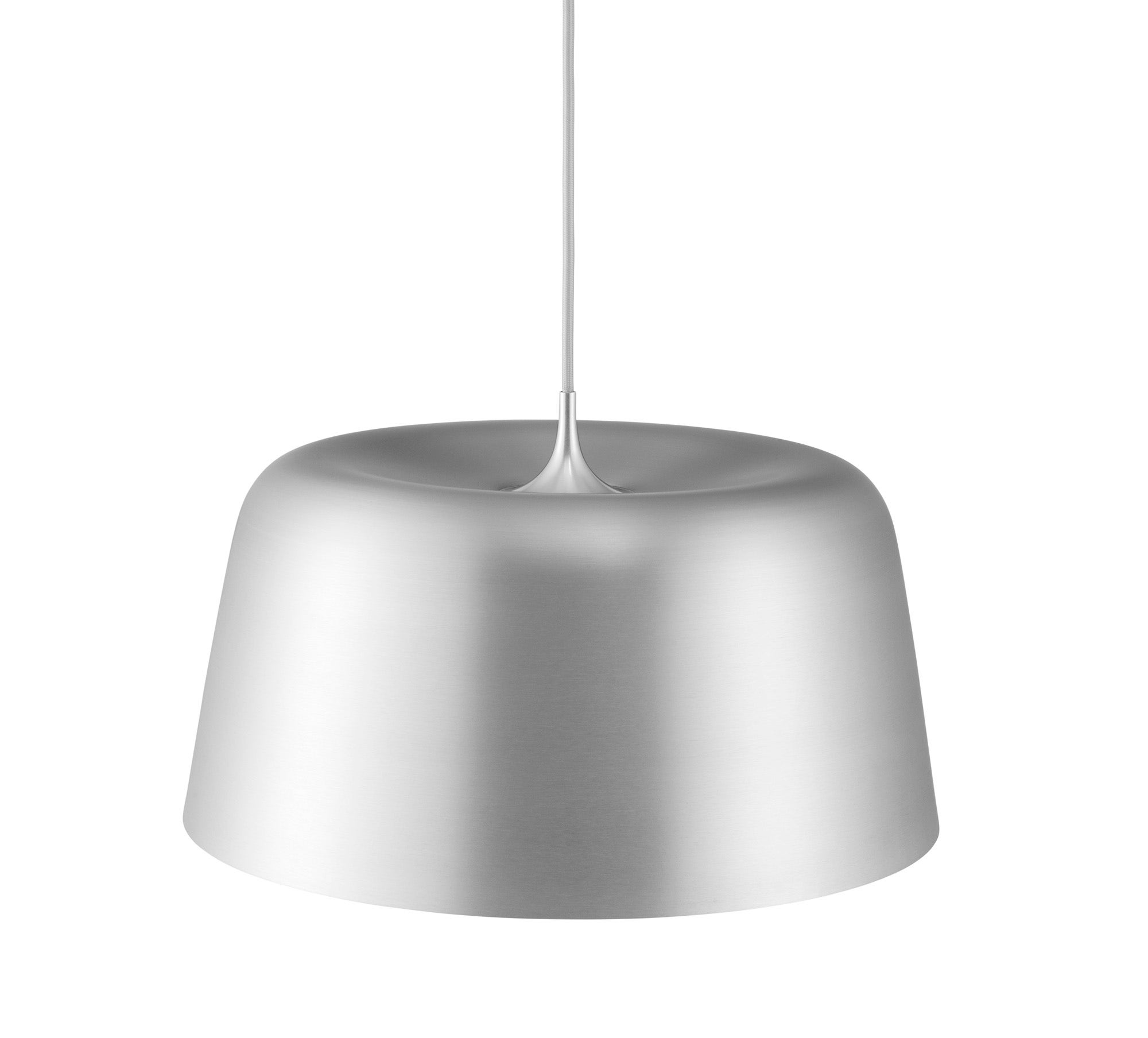 The design of Tub unites inspiration from nature with the minimalistic aesthetic characteristic of Nordic design. Taking center stage, the main feature of the Tub Lamp collection is the generous lampshade which, besides its aesthetic appeal, encapsulates the light and emits a pleasant, uniform glow. The references to the organic shapes of nature are evident in the smooth merge of lampshade and cord. The slightly curved top of the lampshade elegantly grows into a stem, from which the electric cord is wired, presenting a decorative detail reminiscent of the silhouette of an apple or other of nature’s many fruits and plants. The cord and stem seemingly grow together, making the lamp and cord seem like one coherent unit. Tub Wall Lamp comprises the same characteristic features as its pendant siblings. The lampshade is held by an elegant aluminum arm, making space for the same stem-inspired feature as the pendant lamps. For added flexibility, the wall lamp has a free range of movement in all directions.
