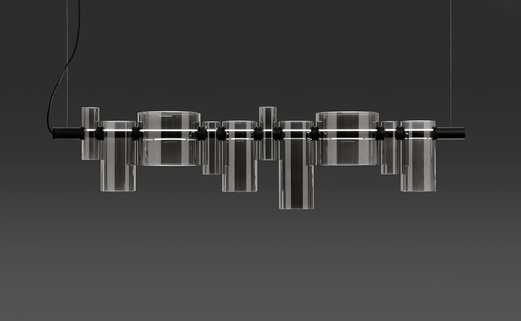 Dancing Glass embodies the elegance of a sophisticated luminaire technique, where light is transformed into poetry. In the pendant model, presented in the new glass and smoked glass finishes, the horizontal structure skilfully conceals the LED source, giving rise to unprecedented light layouts. The irregular shapes play with shadows and reflections, evoking a moving sculpture. The new variant Dancing Glass Applique, true to the playful essence of the original, is expressed in an understated design where the cylindrical element becomes unique. The use of glass gives a play of light and shadow, celebrating, as the name evokes, the dance of light.