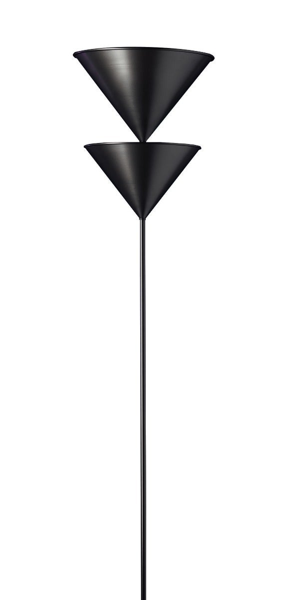 The Pascal floor lamp perfectly encapsulates Vico Magistretti progressive aesthetics, with a sense of geometry impervious to any strict dictation or rules. The Pascal is a floor lamp giving indirect and reflected light in lacquered aluminum, an independent double lighting and a lacquered metal base.