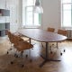 The Facon Table is the perfect meeting and conference table because of the organic trapeze shape which allows everyone to be able to see, for instance, a conference screen.