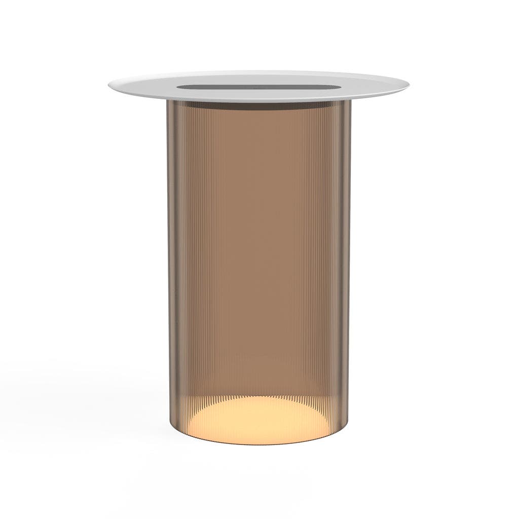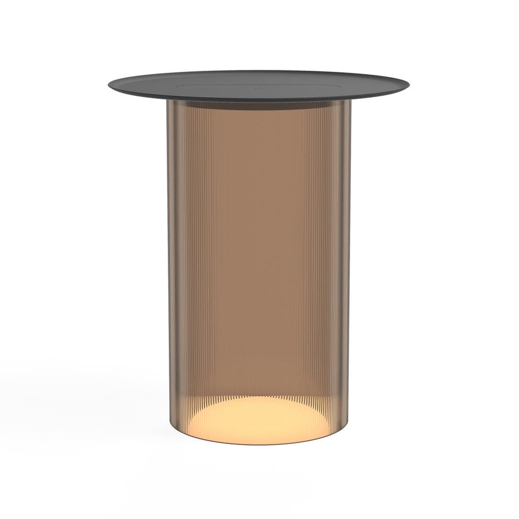 Carousel blurs the line between ambiance and utility combining a low setting wireless charging tray surface for your mobile devices with warm, glare-free illumination. It's low profile LED light module is discreetly concealed below its mating tray and suspended atop a transparent fluted acrylic cylinder diffuser that radiates mesmerizing light patterns onto the table surface below. Perfectly suited for desktop or bedside use, Carousel embodies a uniquely hybrid perspective on what a personal light can be.