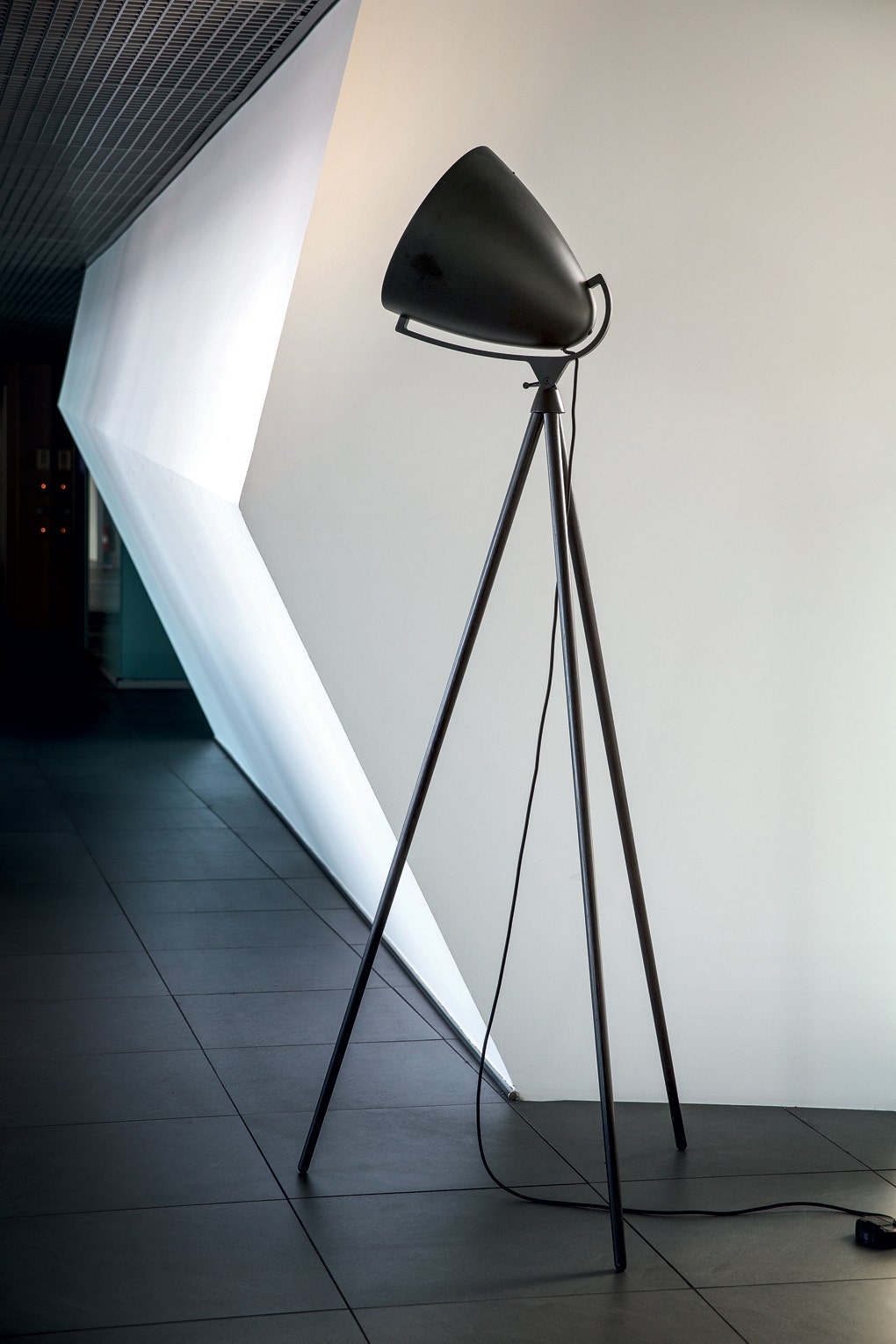Swiss designer Hannes Wettstein left an important legacy for the contemporary culture of design. His creations include the Faro lamp, introduced in 2000 and one of Pallucco’s biggest successes. Today, also thanks to the partnership with the Hannes Wettstein Studio, Faro has been restyled. With its unmistakable cycle shape, the lampshade is no longer supported by a metal rod, but rather by a turned oak tripod with a lacquered finish that leaves the wood grain visible, creating a contrast between wood and metal. The lampshade can be adjusted to provide either direct or diffused lighting, with adjustable luminous intensity.