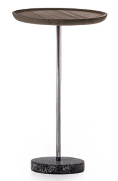 A collection of functional and elegant accessories, Contralto wears its pared-back, linear look as a distinguishing feature. The series comprises mirror, side tables and valet stands. The latter all share a common specific detail giving them their distinctive character: a terrazzo plinth serving as the base supporting a sleek, slender metal stem that has a series of elements branching off it at the ideal height for practical use. The resulting forms are fluctuating sculptural volumes, often portable, invariably full of life, designed to simplify those little everyday actions. All shelves and set-down spaces are made from turned and smoothed ash to provide a lovely tactile quality and prevent damage of any kind to whatever item of clothing or other object is placed on them, no matter how delicate. These pieces can be tailored to individual requirements, choosing any of the Pianca wood options.