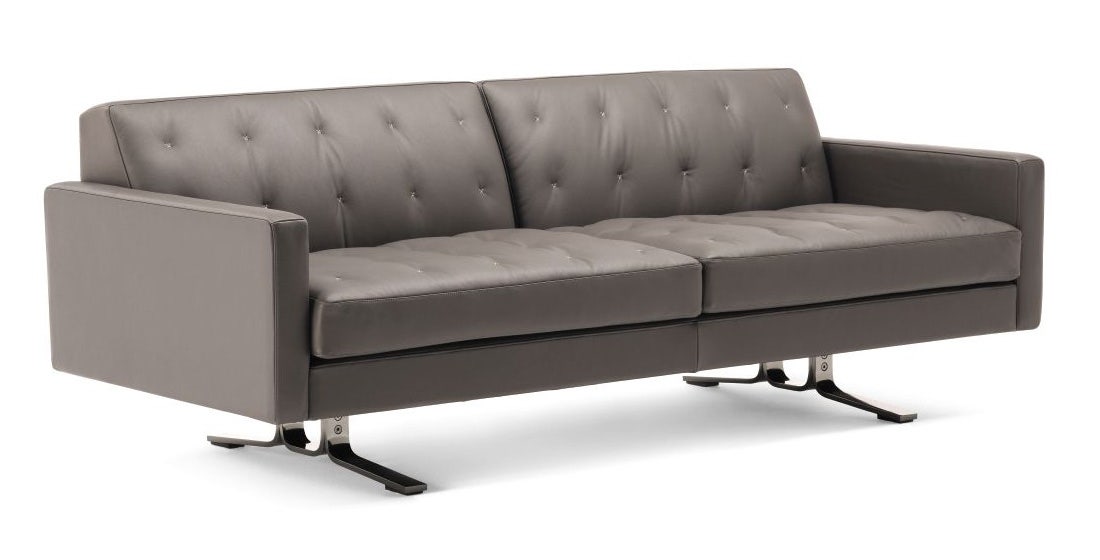 Kennedee lounge seating reinterprets the traditional shape of the sofa. Its modularity enables a number of configurations for lobbies, lounges, and welcome areas. Light, modern quilting on the back and seat cushions, upholstered in Pelle Frau® Color System leather, highlights the artisanal craftsmanship. The swivel Kennedee Sofa.