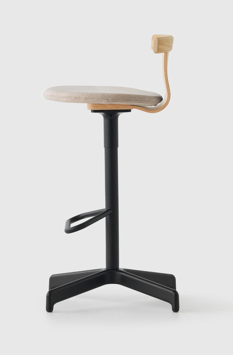 The Jiro Swivel Stool is a unique and versatile furniture piece that offers maximum comfort with minimalist design elements. A finely balanced oak seat and back combine with Residents 4-star die-cast base to provide ergonomic, dynamic and responsive support. The Jiro Swivel Stool comes complete with a 360-degree swivel return mechanism, which ensures a consistent forward-facing orientation. Jiro Swivel stools are appropriate as a stool in both home and hospitality environments.