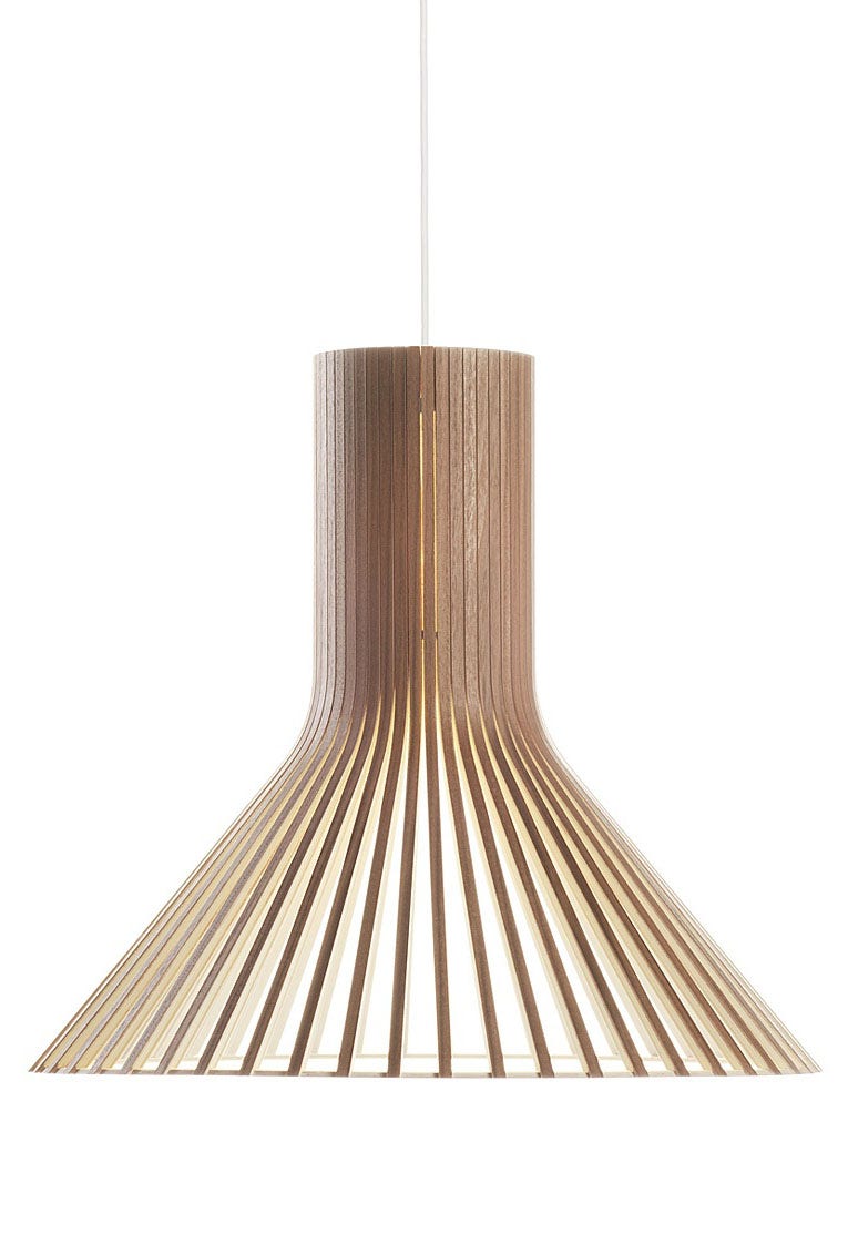 Hallmarks of Finnish lighting company Secto Design's approach include the careful consideration given to the light source placement within the shade and the use of Finnish birch. The warm light emitted from the birch shades emphasizes the surrounding space, creating an inviting and cozy atmosphere. The Secto lighting collection is distinct and thoughtfully curated, comprising table, pendant, wall, and floor lamps.