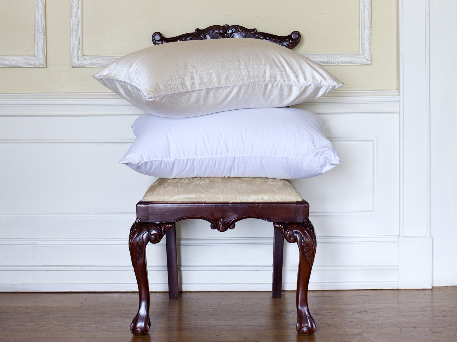 The pillow cover is made of our special SoLoft™ 100% cotton which is designed especially for pillows. Included is a gorgeous pillow protector of washable 100% silk. Both fabrics are made in Germany.