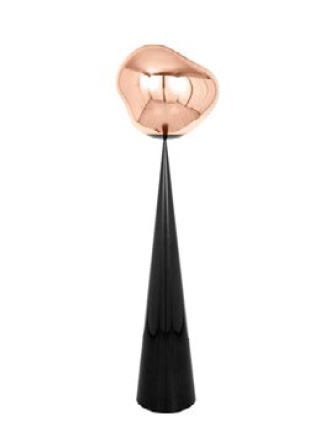 Melt is evocative of molten glass, the interior of a melting glacier or images of deep space. An imperfect, organic and naturalistic light that produces a mesmerizing hot-blown glass effect. Melt is created through a process of blow molding and vacuum metallization to achieve melted orbs with abundant and unusual luminosity. Here the orb sits on a cone-shaped base creating a striking silhouette.