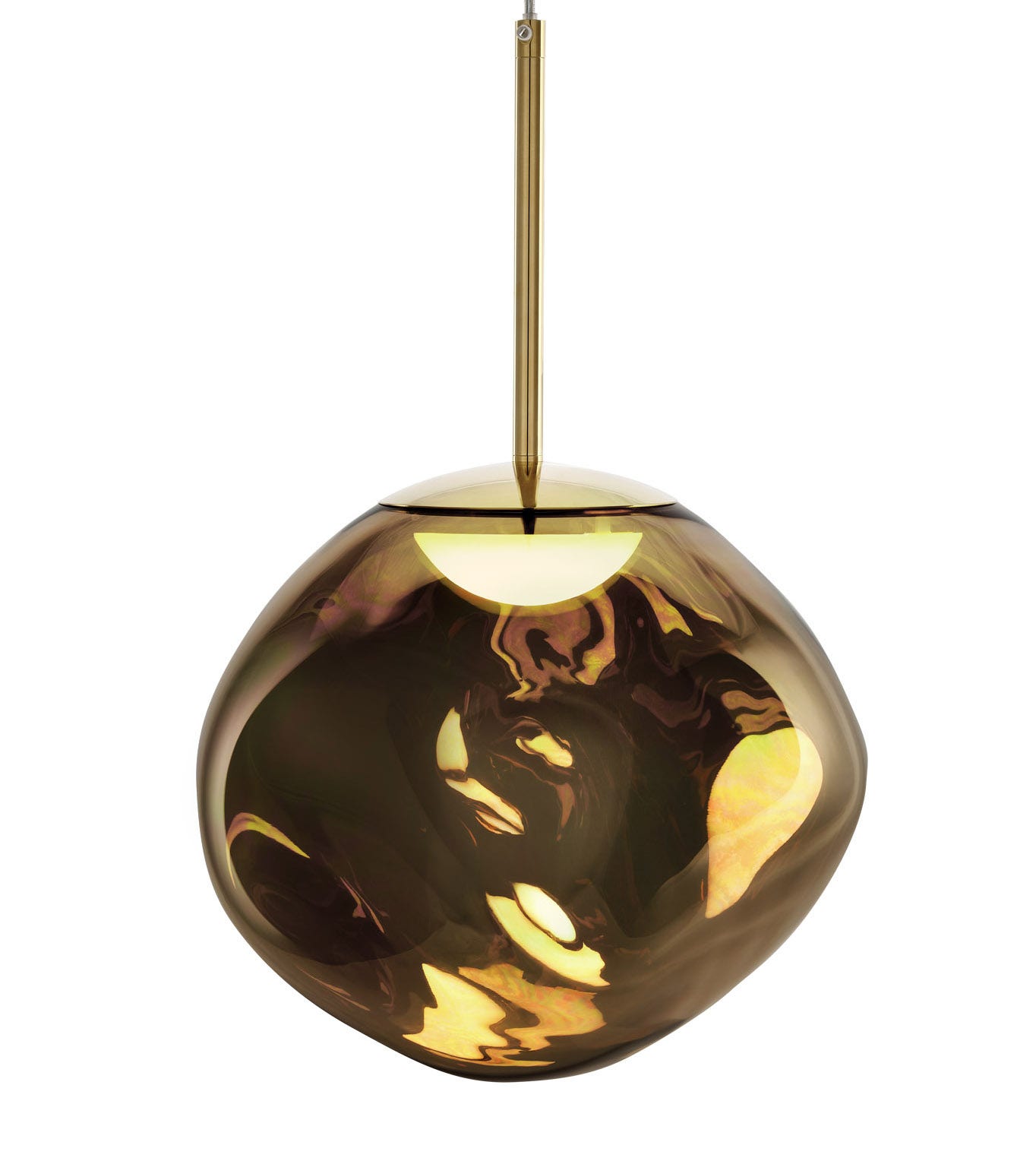 Melt is evocative of molten glass, the interior of a melting glacier or images of deep space. An imperfect, organic and naturalistic light that produces a mesmerizing hot-blown glass effect. The Melt family is now available with a new custom-made Tom Dixon LED ring.