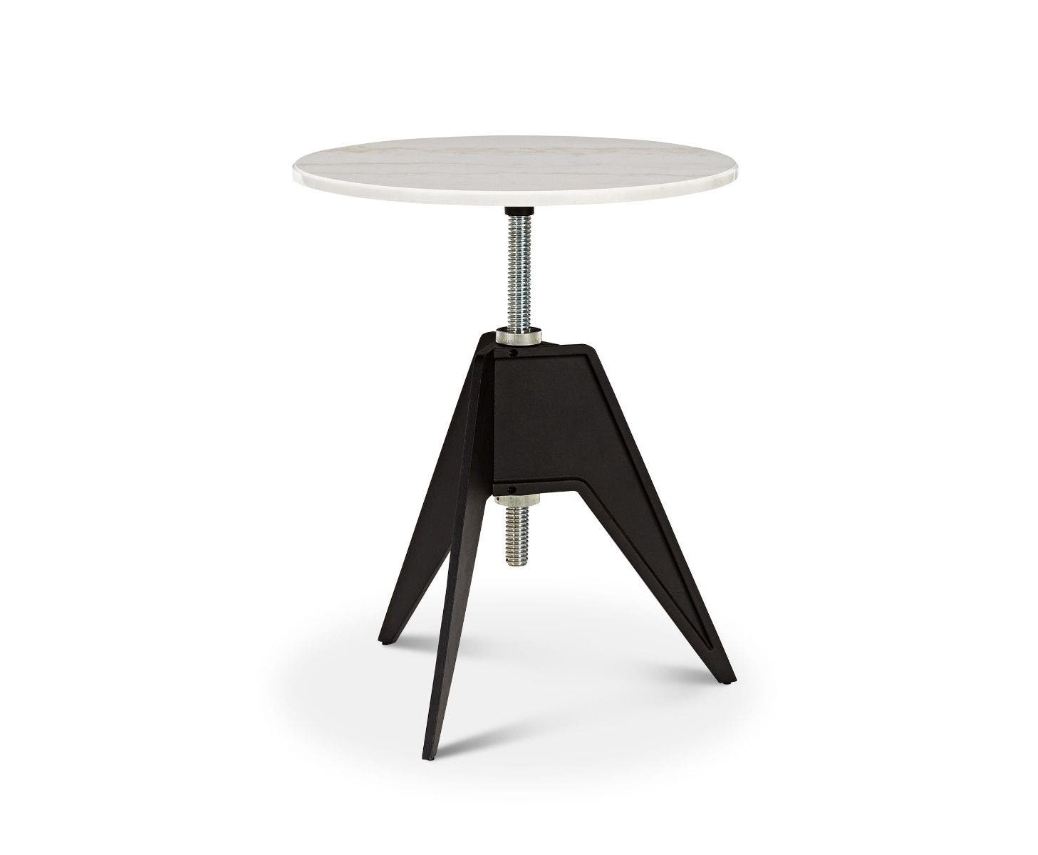 Inspired by the materials and processes of the Industrial Revolution, Screw is made from a cast iron tripod base, updated with a wider footprint for added stability. The thread, now in steel, allows for multiple heights by simply spinning the top.