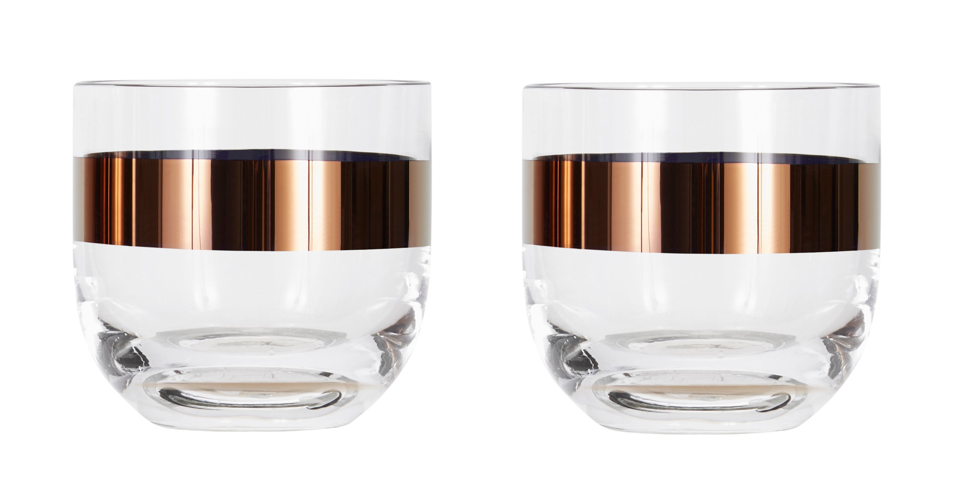A pair of Tank Whiskey Glasses to accompany our Tank Whiskey Decanter, presented in gift-worthy packaging. Mouth-blown and ornamented with hand-painted copper detailing, it forms part of a collection alongside our other Tank glassware and tableware.