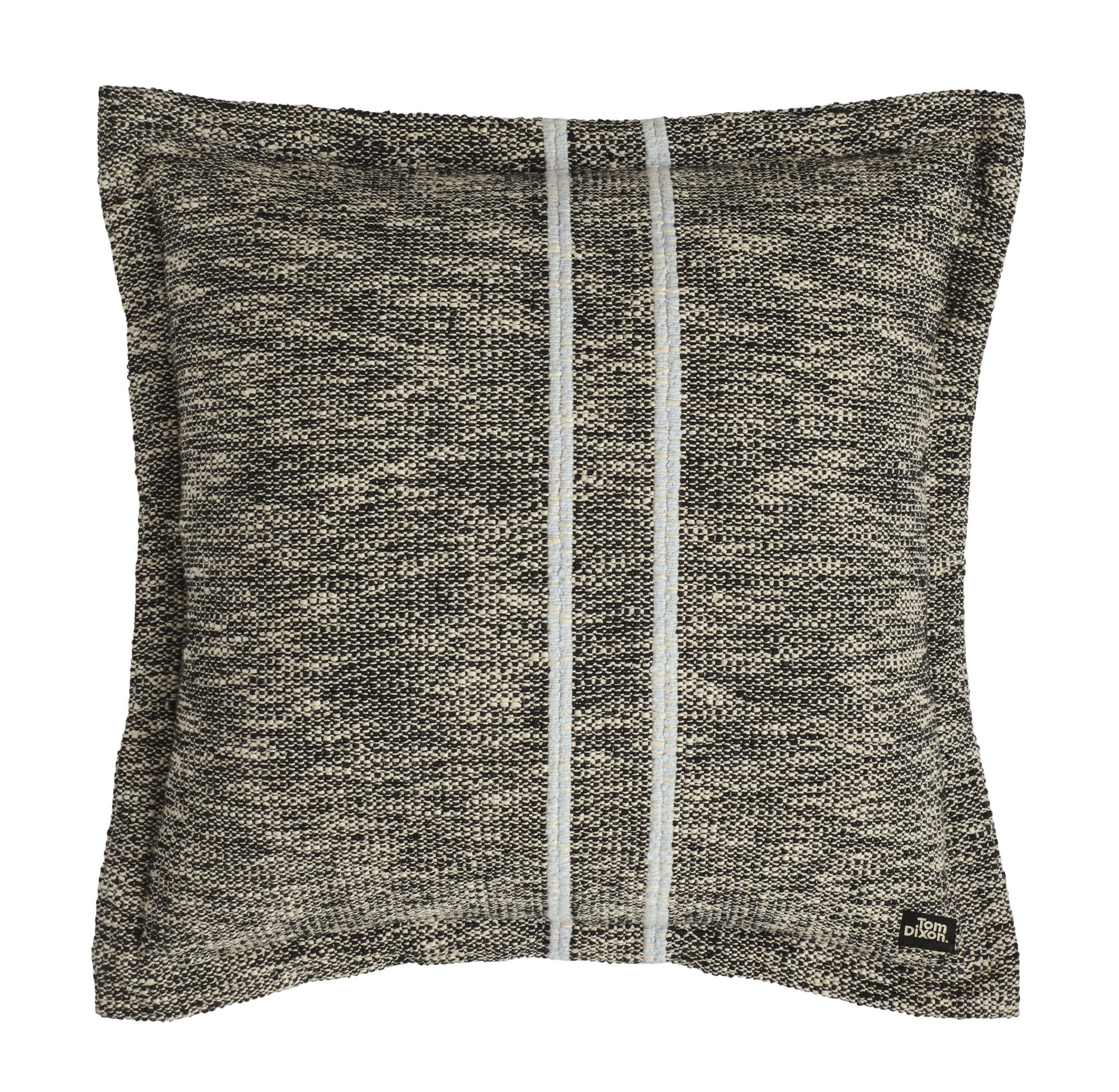 Contrasting woven stripes add a bold design detail to a slubby handwoven, oversized cushion. Two tones in the body of the fabric give a soft chambray effect. Oekotex certified.