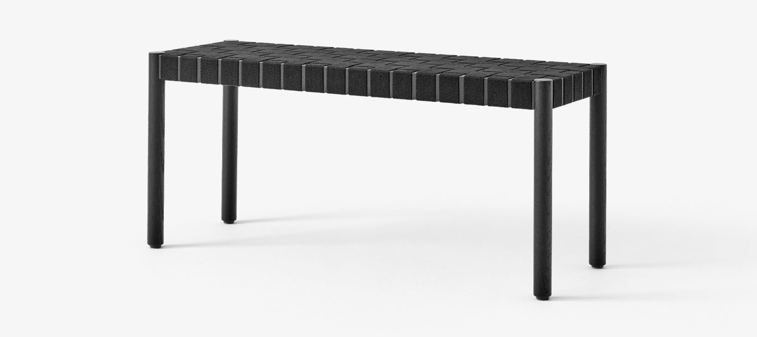 Named after the Betty Nansen theater in Copenhagen, this bench is made from exposed webbing hand-crafted from natural linen fibers. Its solid oak frame is available in three contemporary colours: Black, Twilight, Maroon and Oak with natural webbing, as well as a version in Black with black webbing.