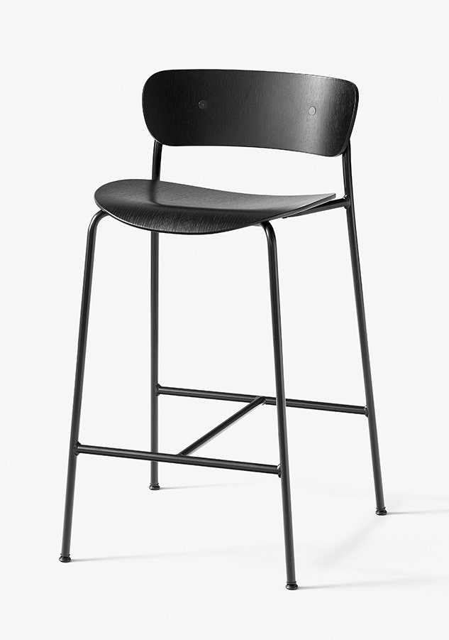 The Pavilion bar & counter stool has an airy feeling, with fluid curves for the wood veneer seat and back which continue as lyrical lines in the steel tubes of the legs. The result is a silhouette that’s barely there. Ideal for furnishing an expansive bar or a kitchen counter without appearing crowded, they can easily fill a space without the space appearing full.