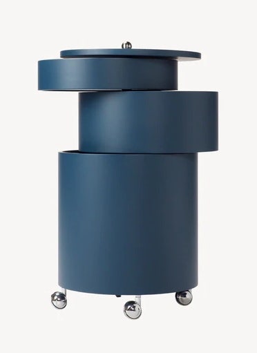 Adaptable side table and mobile storage unit in one. Barboy consists of three round-shaped drawers, which can be pulled out fully so the whole surface can be used. Barboy is a typical example of Panton’s furniture, in which he combines a matt surface with a shiny chrome handle and wheels, investing the piece with an elegant contrast.