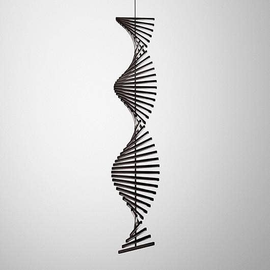 The Rhythm lamps are an Arik Levy design. The Rhythm collection is capable of adopting many configurations thanks to its rotation around a central axis which allows for the free movement at an angle of its light sticks. This approach allows the Rhythm lamps to be configured into smooth waves or bespoke chaotic shapes. Vibia offers over 20 versions of the Rhythm lamp with both horizontal and vertical alignments. The installation is surface mounted.