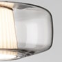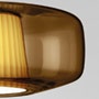 A collection with the charm of a bygone era, featuring sinuous lines and a play of materials. The blown glass diffuser conceals a fabric lampshade, creating refined plays of transparency. New medium and small pendants, a new wall light, and new color options for the inner fabrics are now available. Available in different glass and frame finishes. LED light source.