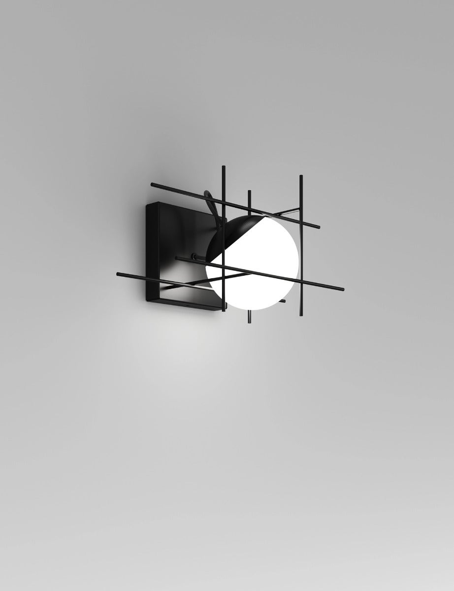 The inspiration behind Plot Frame is to render the motion and simplicity of a sphere. A metal weave where luminescent glass spheres are almost free to move, allowing the user to interact with the object. Matt black frame. LED light source.