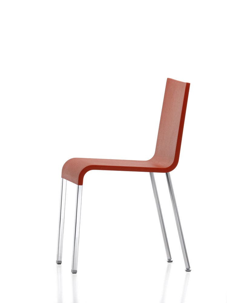 The extraordinary comfort of the unobtrusive .03 chair is first revealed upon use: the seat shell, which is made of resilient integral skin polyurethane foam, adapts to the user's body and flexes slightly when the sitter leans back, aided by leaf springs embedded in the backrest.