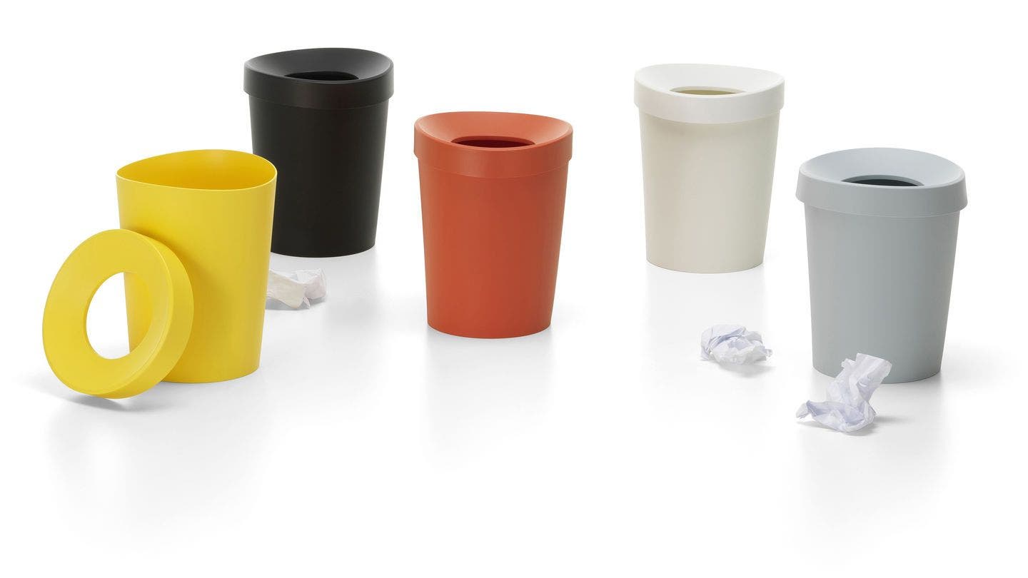 Happy Bin by Michel Charlot has a slightly irregular organic shape which gives the impression of a small sculpture. The waste paper bin is made of robust plastic and comes in two sizes and a selection of colours.