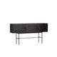 The Array series is inspired by the wooden slate cladding found in modern architecture. With its geometric shape and horizontal slats, it creates a strong visual effect from catching both light and shadow in the depth of the slats. The sleek legs lift the sideboards from the ground creating an elegant contrast between the solid wooden cabinet on top and the thin metal construction underneath.